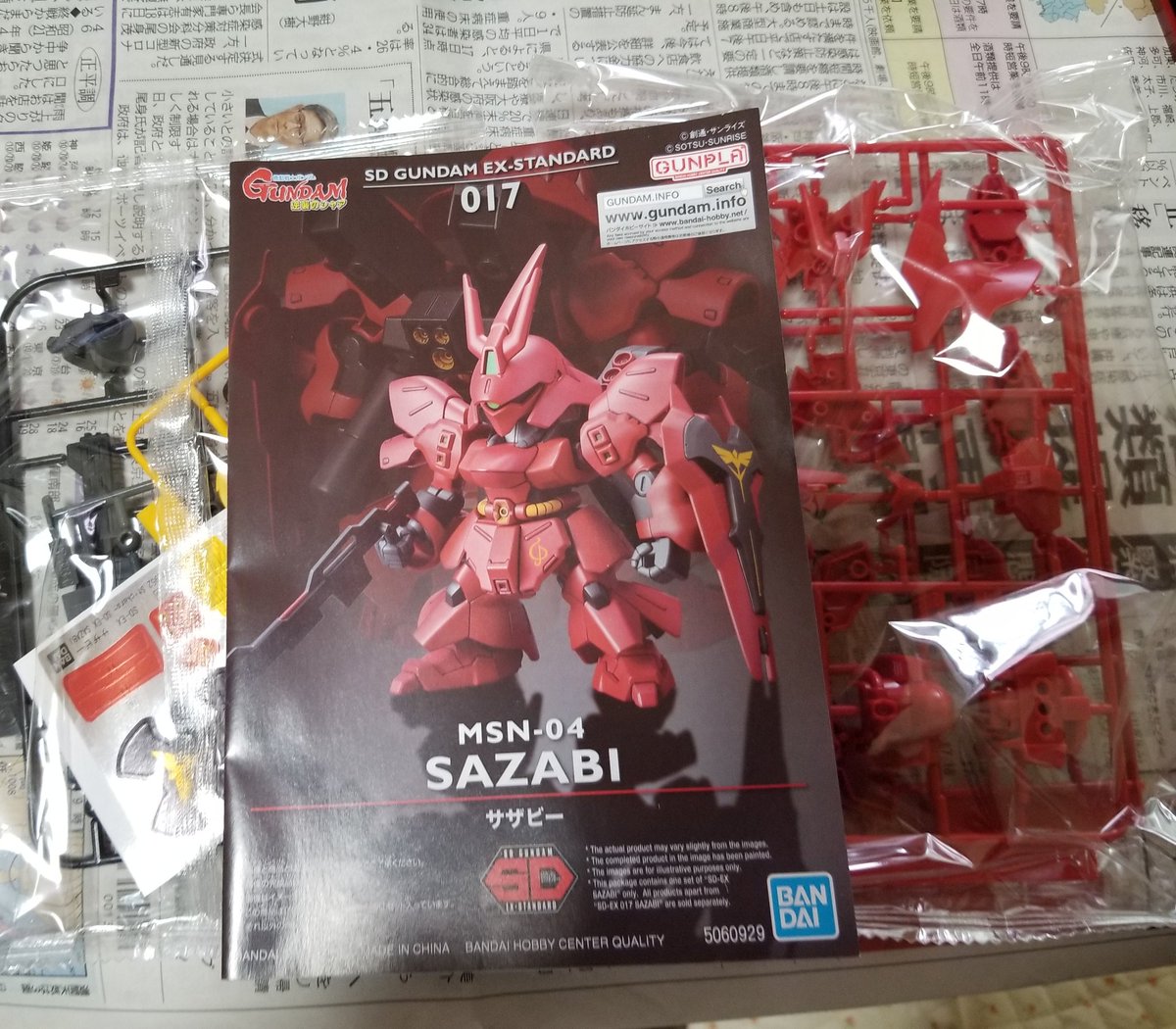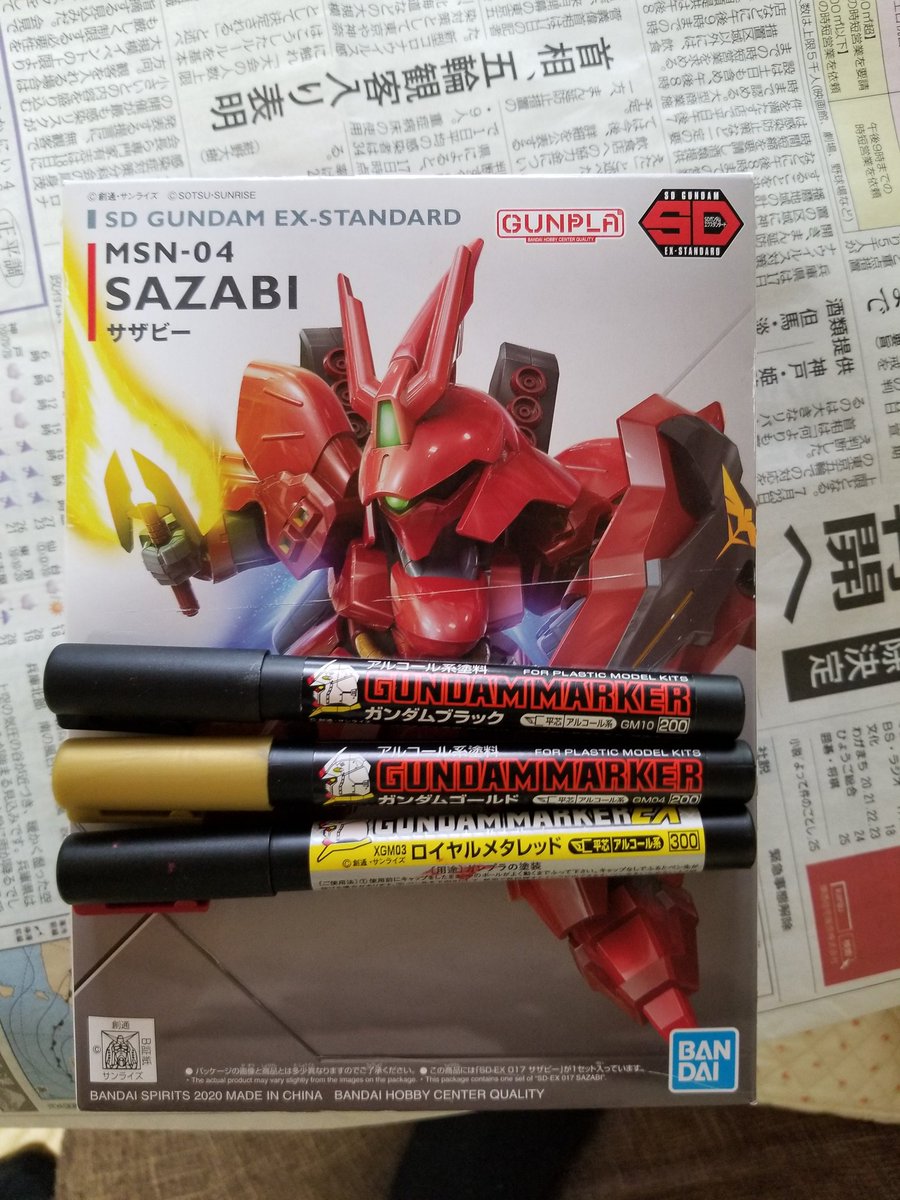 #ガンプラ好きと繋がりたい #ガンプラの画像を貼るとRTされると聞いて #SDEX #νガンダム 先週のサザビーに引き続き今週はνガンダムを作っていきます。ファンネル成形色がまさかの黒なんで部分塗装でがんばります