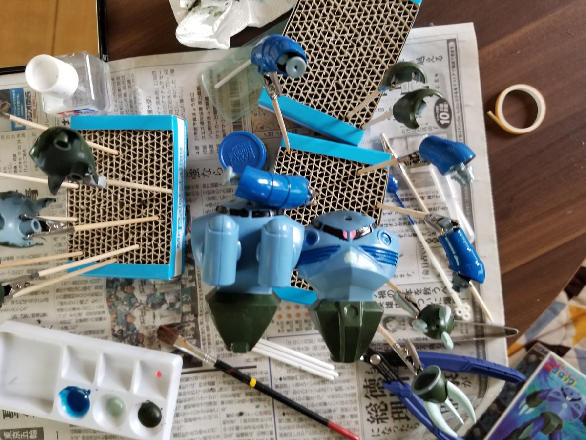 #ガンプラ #旧キット #ズゴック #ガンプラ好きと繋がりたい #ガンプラの画像を貼るとRTされると聞いて 塗装乾燥待ち。ベストメカコレクションはパーツ数少ないので筆塗りで頑張って塗りました。組むのはまた後でやろう。