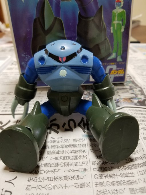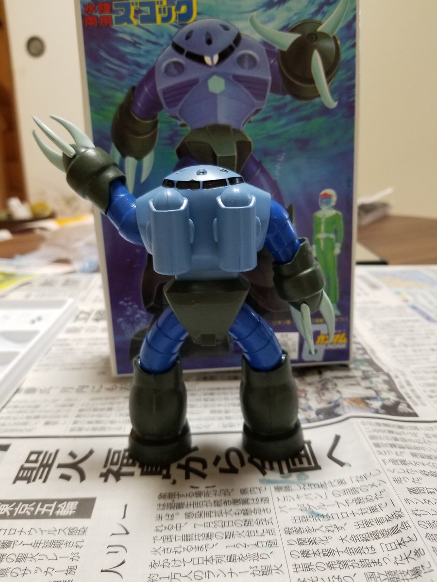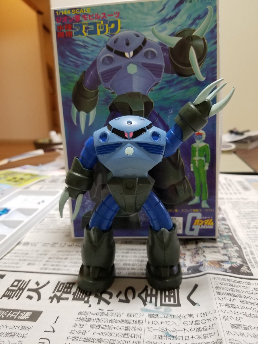 #ガンプラ好きと繋がりたい #ガンプラの画像貼るとRTされると聞いて #ガンプラ完成しました #旧キット #ズゴック #筆塗り 旧キットズゴック完成しました。今回は全塗装筆塗りで。1枚目の写真みたいにちょこんと座れるのやっぱり可愛いなあ。キット代300円分以上に楽しめました。