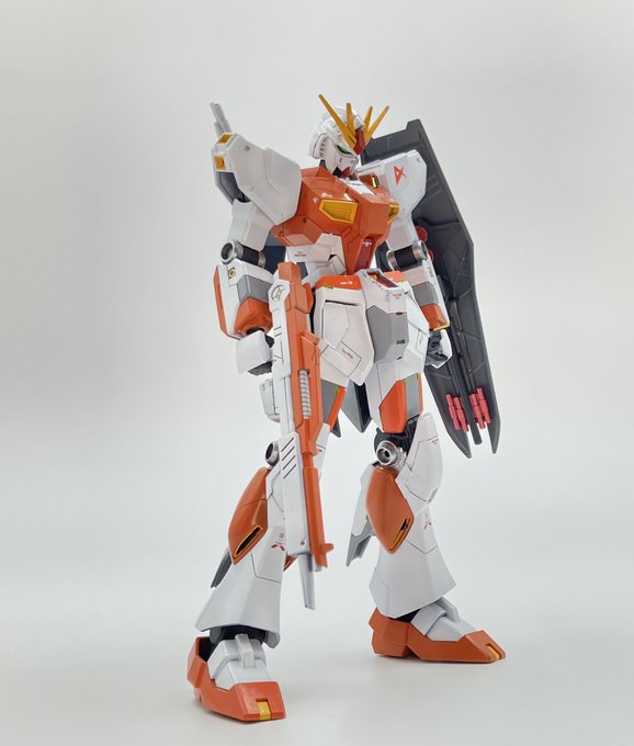 EGνガンダム完成しました! EGはディティール少ないので、スジボリとピンバイスやプラ板によりディティール追加を行いました! 下手くそなりに頑張ってみたので、見ていただけたら幸いです! オレンジのνガンダムどうですか? #νガンダム #ガンプラの画像を貼るとRTされると聞いて