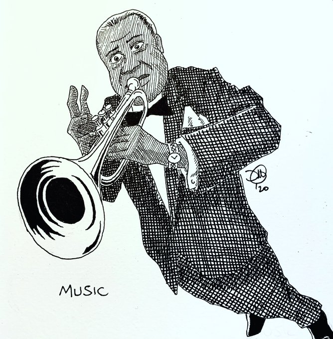 Because I don’t have enough to do, me and an elite group of my students are taking on #inktober - Today’s Prompt: MUSIC #middleschool #middleschoolartteacher #art #inktober2020 #inktoberday27 #inktoberprompts #inktoberchallenge #music #trumpet #jazz #horns