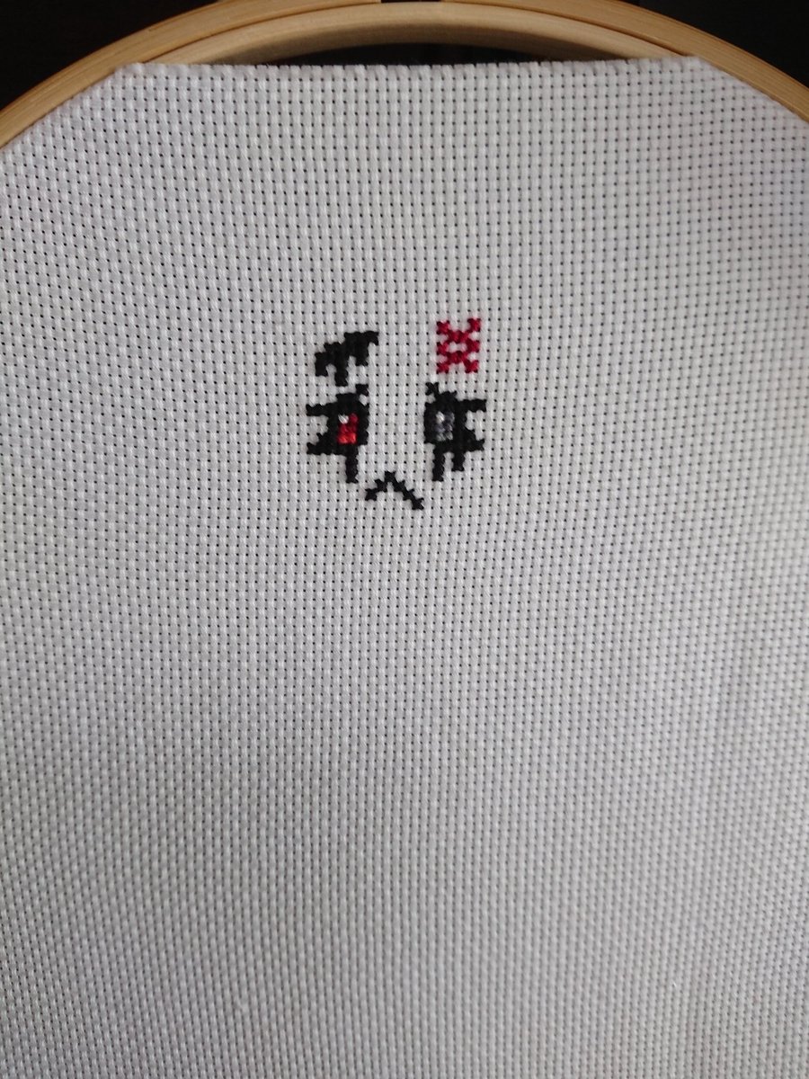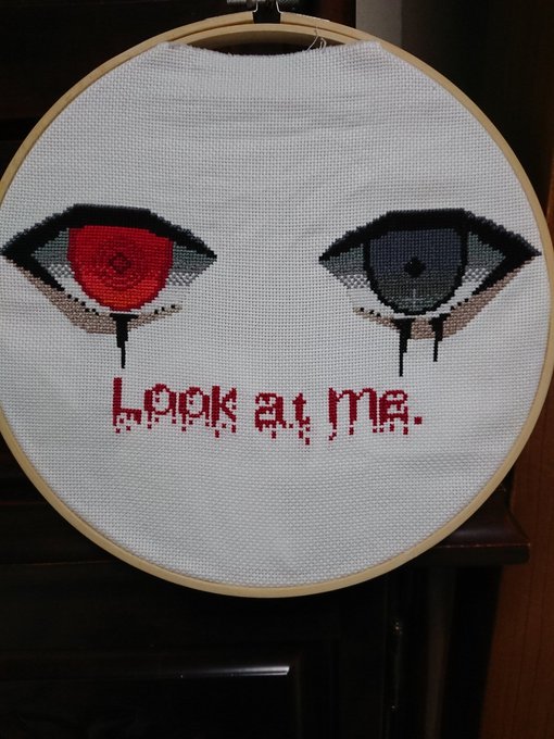 お目目縫ってみました👀✍︎ #肉片ちゃん #にくあーと #クロスステッチ