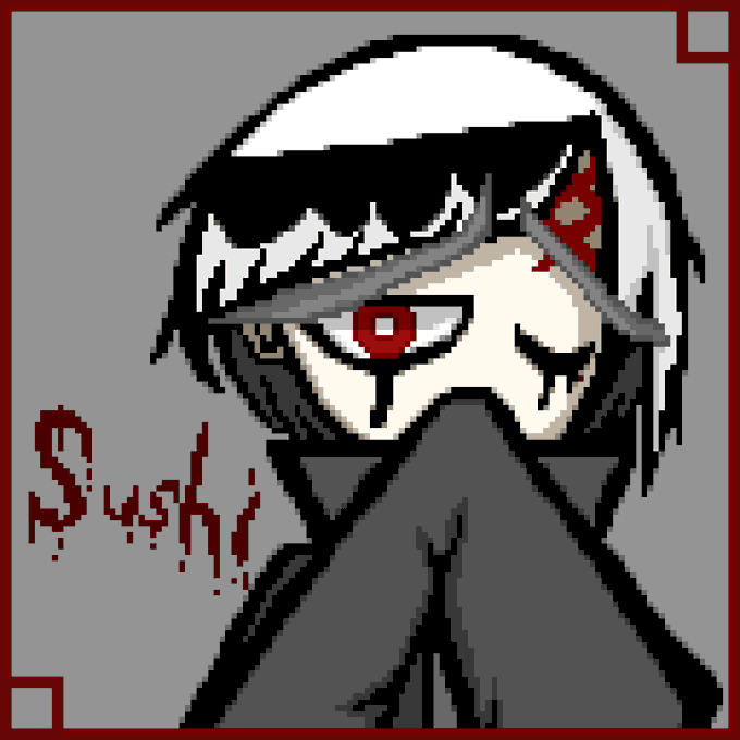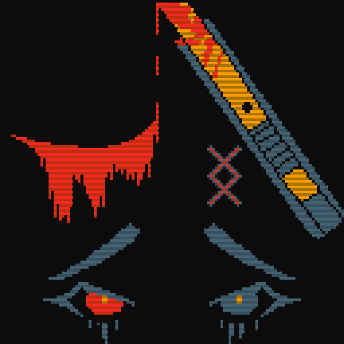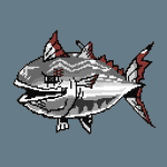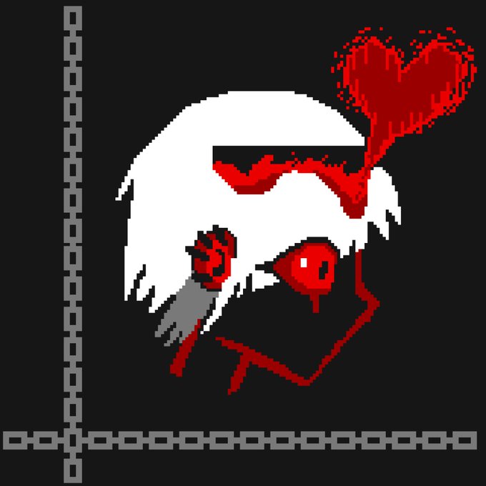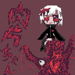 #ふぁんみぃと #にくあーと #ブレファンアート マグロンの説明で「強敵の姿に擬態して獲物を狙う」て書いてあったので、肉片ちゃんver.を「こんな感じになるかな?」と思いながらドット絵してみました🐟