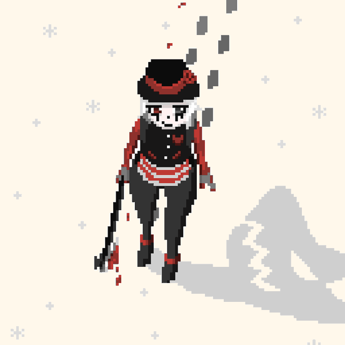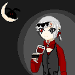バーテンダー肉片ちゃんをドット で。 3Dモデルもmoon walkの公式Vも凄いなぁ…… #ふぁんみぃと #にくあーと