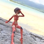 うちのロードランナーちゃんが近所の模型店主催フォトコンテスト 「メガミと夏休み☀️いきもの部門」で優勝した時の写真です。 お土産にと拾った宝物には先客が居たようで… ありふれたヤドカリも彼女にとっては未知との遭遇 顔メガミ用ガレキ使用 #メガミ4周年選手権 #4Aコース完成 #メガミデバイス