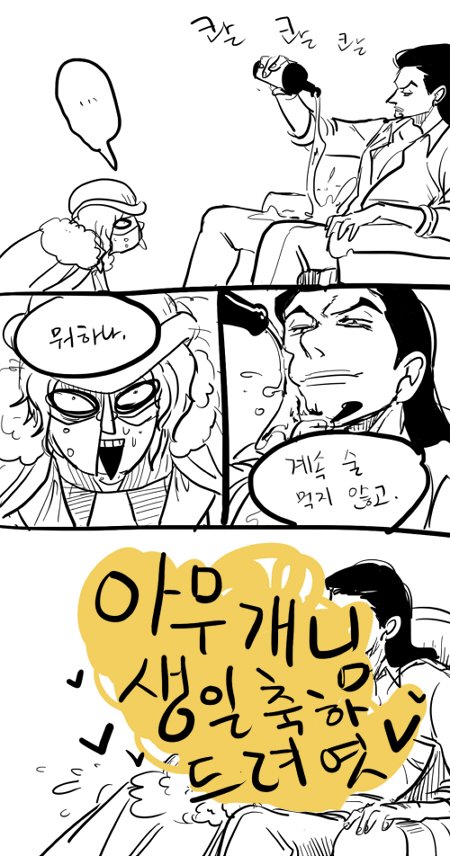 *<<스팬담에게 정신적 폭력 있음 주의>>* 아무개님 하루 늦게 생일축하드려용!!! 술이라는 단어로 리퀘를 주시다닛.. 일러스트로 하려다가 신나서 만화그림☺️ @spandamcookie