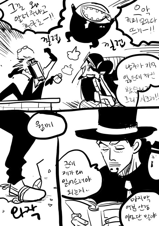 요즘 위대한 항로를 뒤흔드는 베스트셀러 소설이 그렇게 재밌다는데.. 안경루치를 그렸으니 안경스팬담도 그려보고싶어 그렸습니다 첫컷에 안경씌워놓고 힘빠지는것도 여전하군요🙄