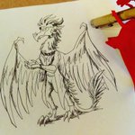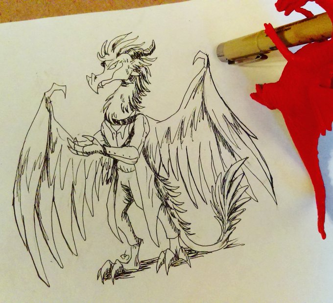 #inktoberday17 Wyverns are dragon/gryphon hybrids, reclusive scientists who disappeared about the eruption of the Chasm. Born without arms, they make the most of their powerful wings, tails, talons, and impressive prosthetic technology. 🔬 #Inktober2019 #inktober