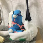 デザイナーズチェアのガチャ、タイニーさんとお文具さんガチャにちょうどサイズです。 写真にはないけどボールチェアにもスッポリです。 └('ω')┘フォォォ!! #メカトロウィーゴ #お文具