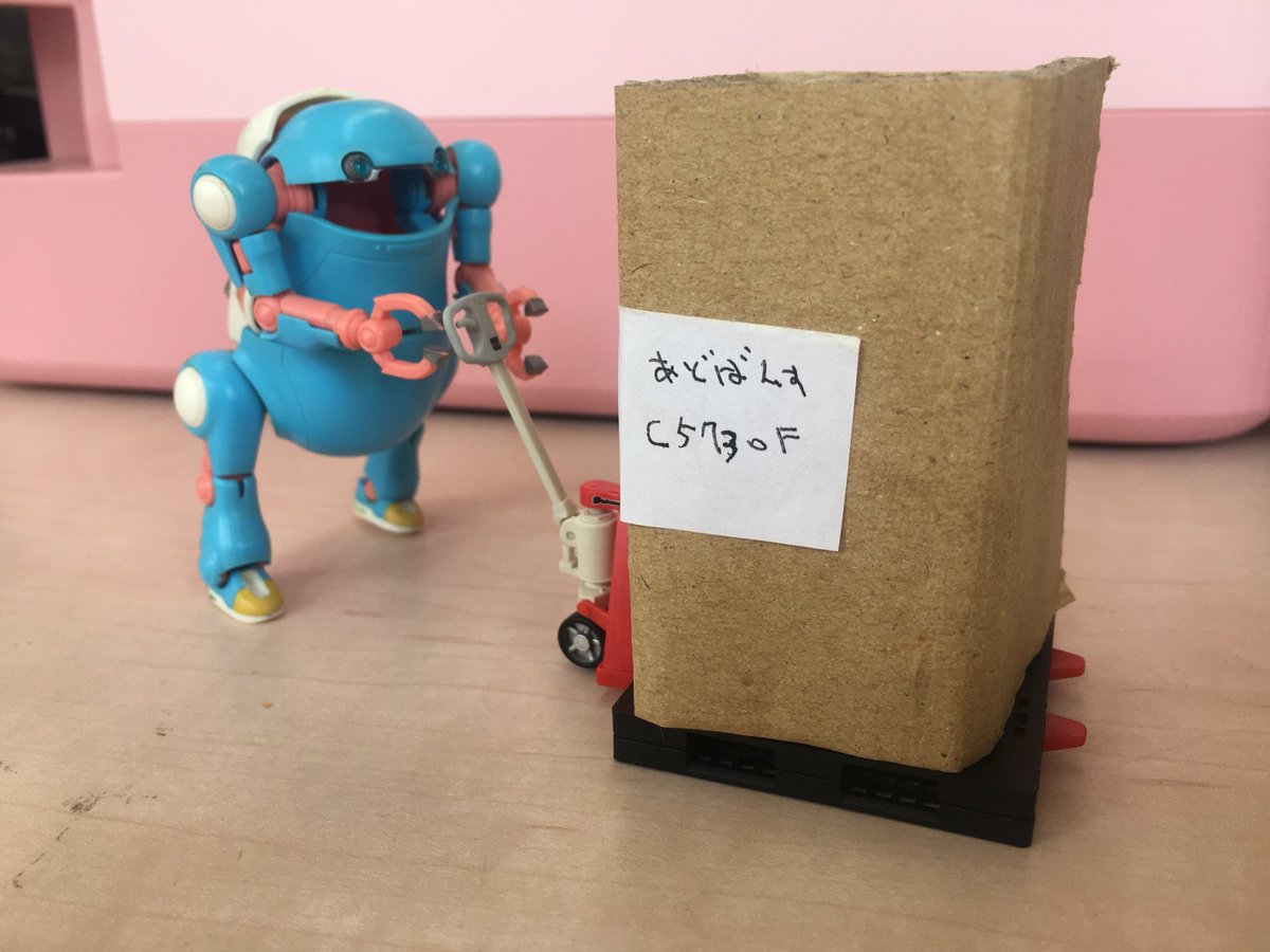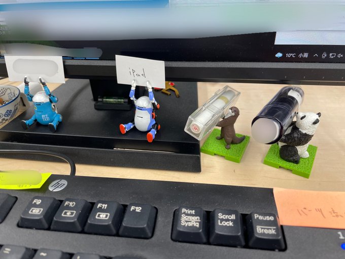 普通に置いておくと怒られそうなのでタイニーさんたちはメッセージ係に任命。 ハンコ持ちのパンダ、カワウソと共に働いてもらいます。 #メカトロウィーゴ