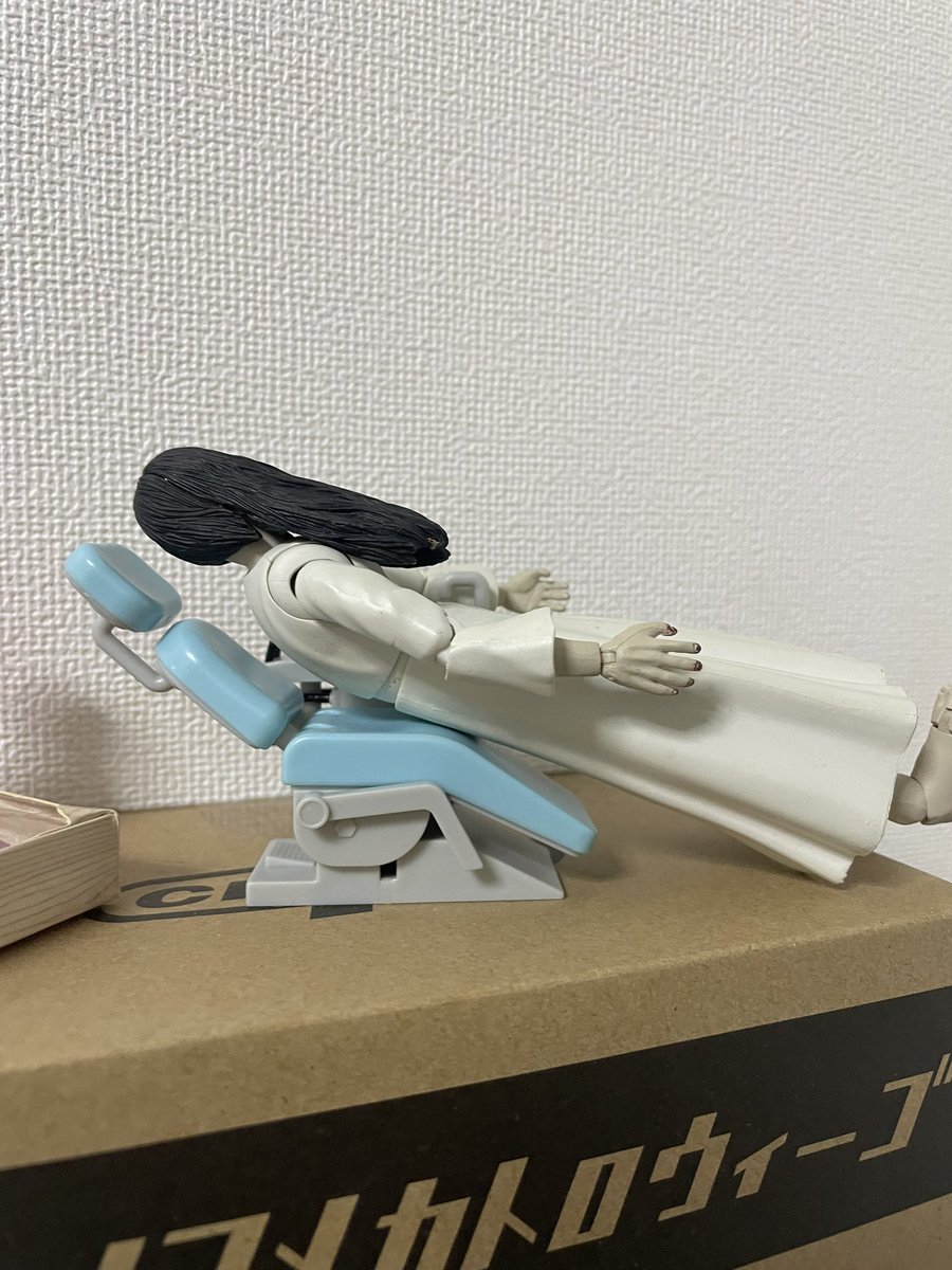 歯医者の椅子ガチャ、貞子さんには小さすぎ、ウィーゴさんにピッタリでした。という報告です。 #メカトロウィーゴ