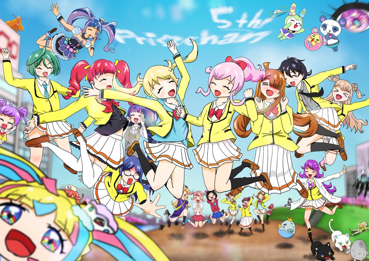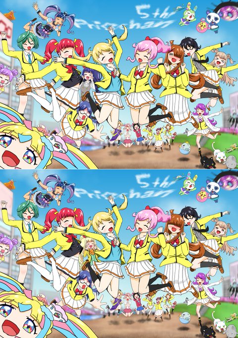 魔法少女☆いちごぱるふぇ🍓設定資料⑦ ラストを飾るのはみ~んなのアイドル、トモちゃんだよ~✨み~んなのアイドルとして今日も無休で働いてます✨ 集合絵初めて描いてみました!どこかの女児アニメで見たキャラも出てますが、プリ同人誌の方でぱるふぇと縁があるんです #魔法少女いちごぱるふぇ