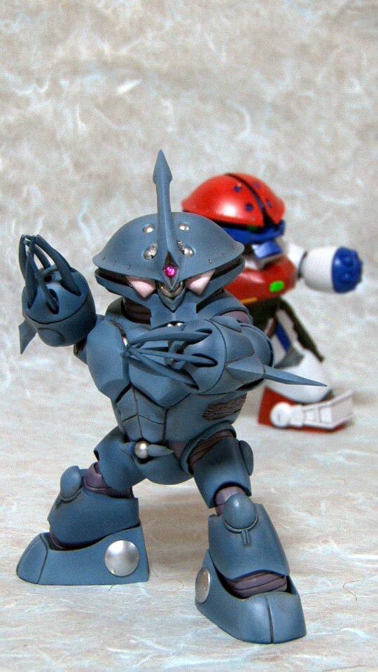 諸般の事情で参加を見合わせようかギリギリまで悩みながらの製作になり墨入れもクリアコートもしない状態のアップとなりましたが何とか形にしました。 「牛若三兄弟・弁慶ドム」 使用キットは「1/144MS用武器セット」 (’80年4月発売) #ガンプラおたんおめ杯完成品