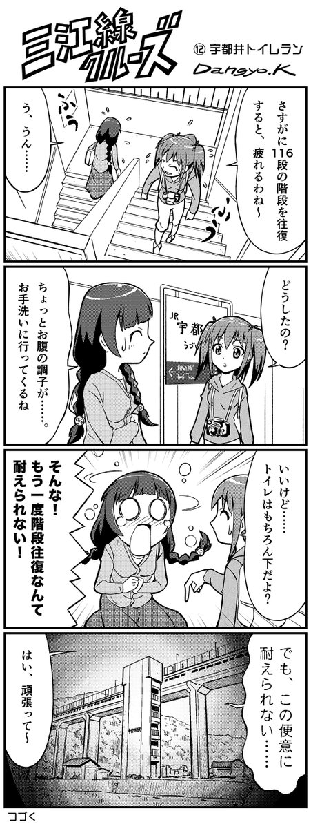 宇都井駅ってのはな、天空の駅って呼ばれるんだ。 ホームから、階段116段を降りないとトイレが無いんだぜ。おいら、間一髪だった時あるぜ。 #三江線 #鉄道 #宇都井駅 #漫画がよめるハッシュタグ #漫画の読めるハッシュタグ