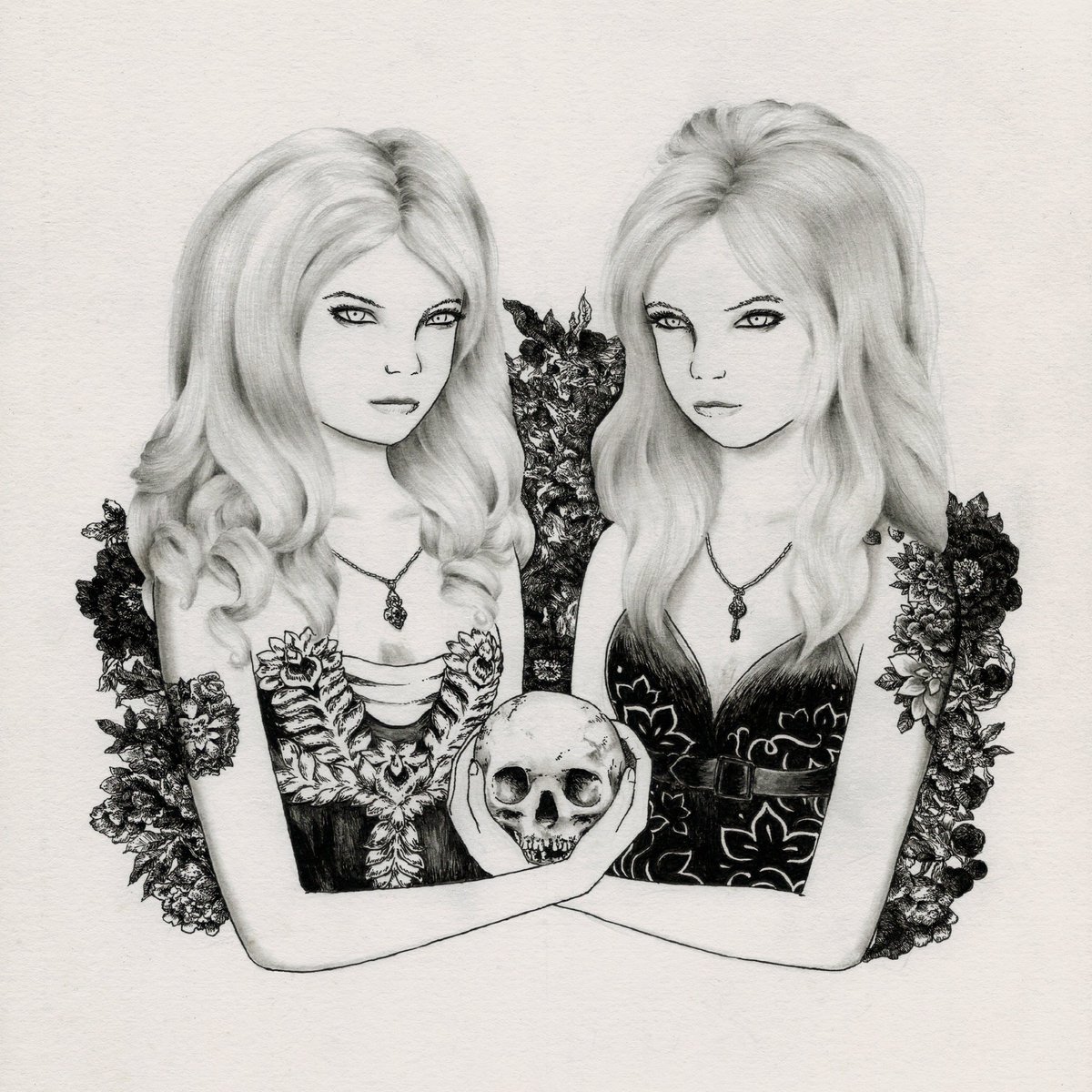 絵を仕事にしようと決心した後最初に描いた作品。10年以上も前の絵なのに、今でも結構好き。双子の姉妹です #art #illustration #drawing #darkart #イラスト #絵 #ペン画 #絵描きさんと繋がたい