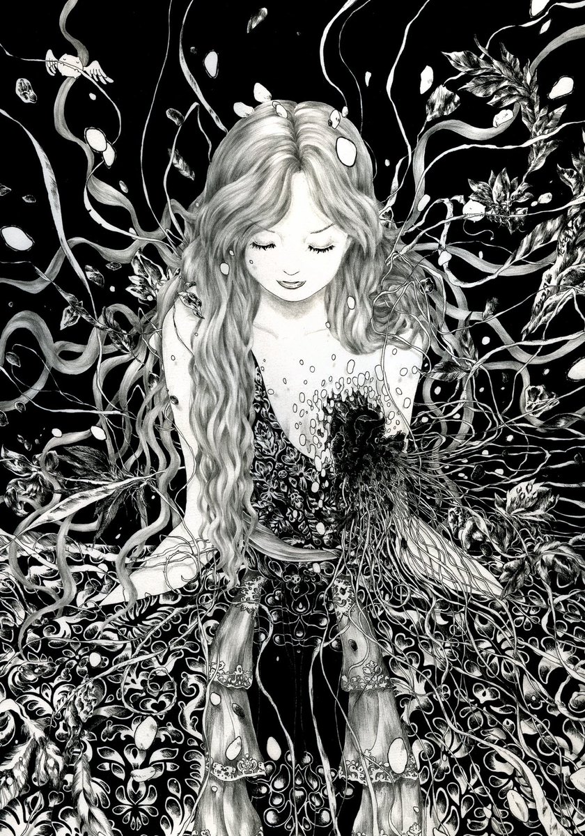 『備忘』. reminder, 2013 辛酸な記憶は髪に絡まった髪飾りのように、取り除きにくいものです。 #art #drawing #illustration #イラスト #絵 #ペン画 #絵画 #絵師 #絵描きさんと繋がりたい #イラスト好きな人と繋がりたい