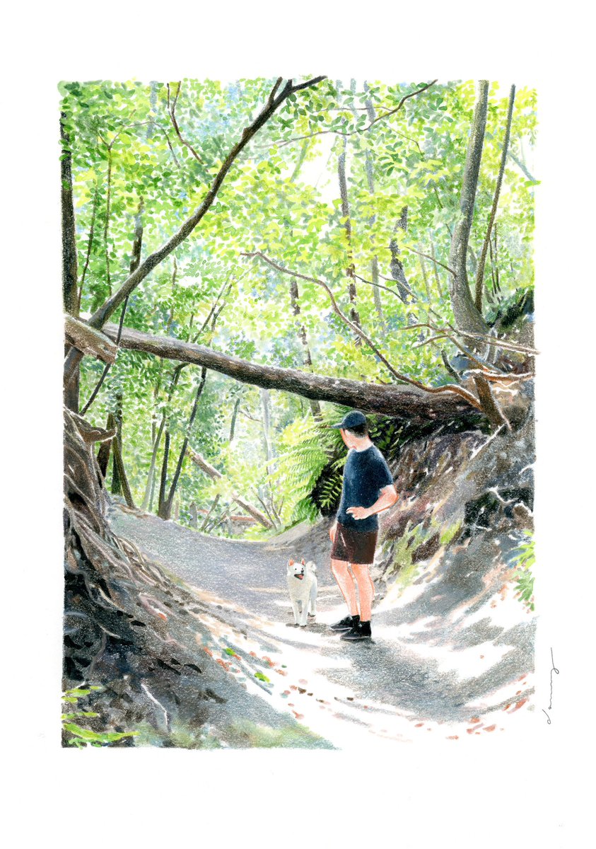 本日発売のSAVVY北摂特集でイラスト描かせて貰ってます🌿北摂の好きなところ紹介してほしい、ということで、近所の山と、犬とおじさん描きました🐶 見てね〜⛰ #illustlation #colorpencil