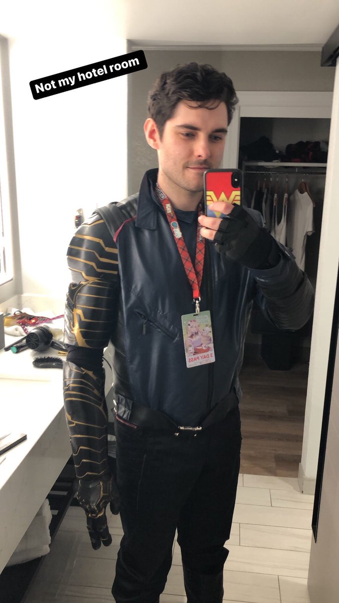 Hey look I’m Bucky!!! This is my first cosplay from the MCU. I’m happy with how the arm came out. But might add some things to it anyway. Arm: by me out or EVA foam #Marvel #cosplay #WinterSoldier #halcon #MarvelStudios @halcon_scificon