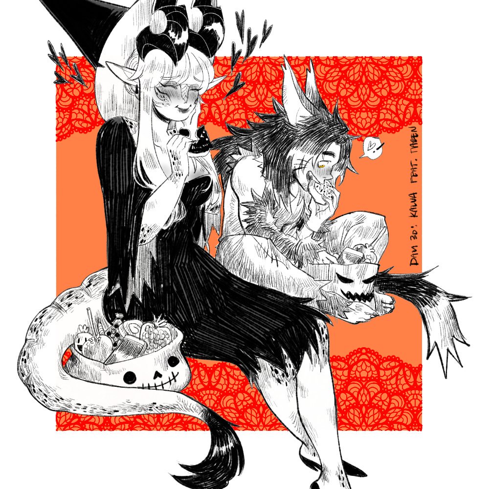 Day 27: Lion-dog and Mantis Genji > @KlTAKI #inktober #oc_tober #komainu #prayingmantis #artistsontwitter