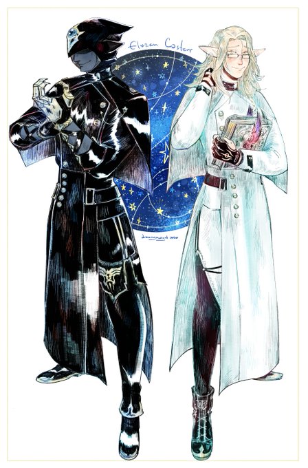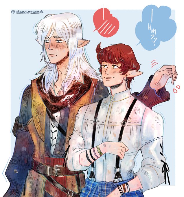 Some recent color busts of Travis and Sylvia in #ffxiv as an elezen and viera respectively #NoMoreHeroes #FF14