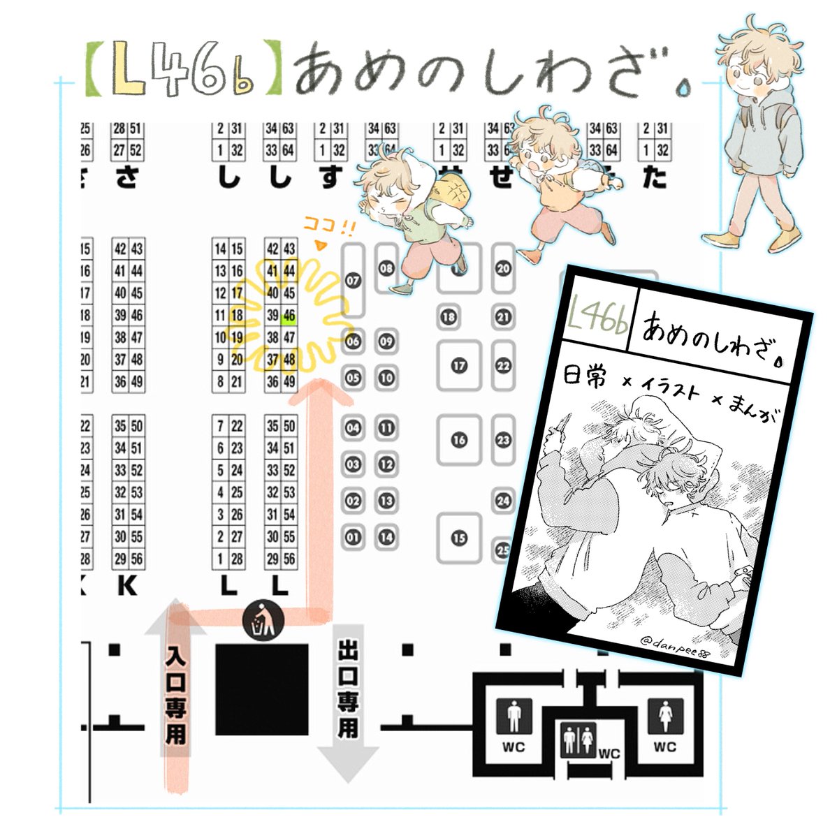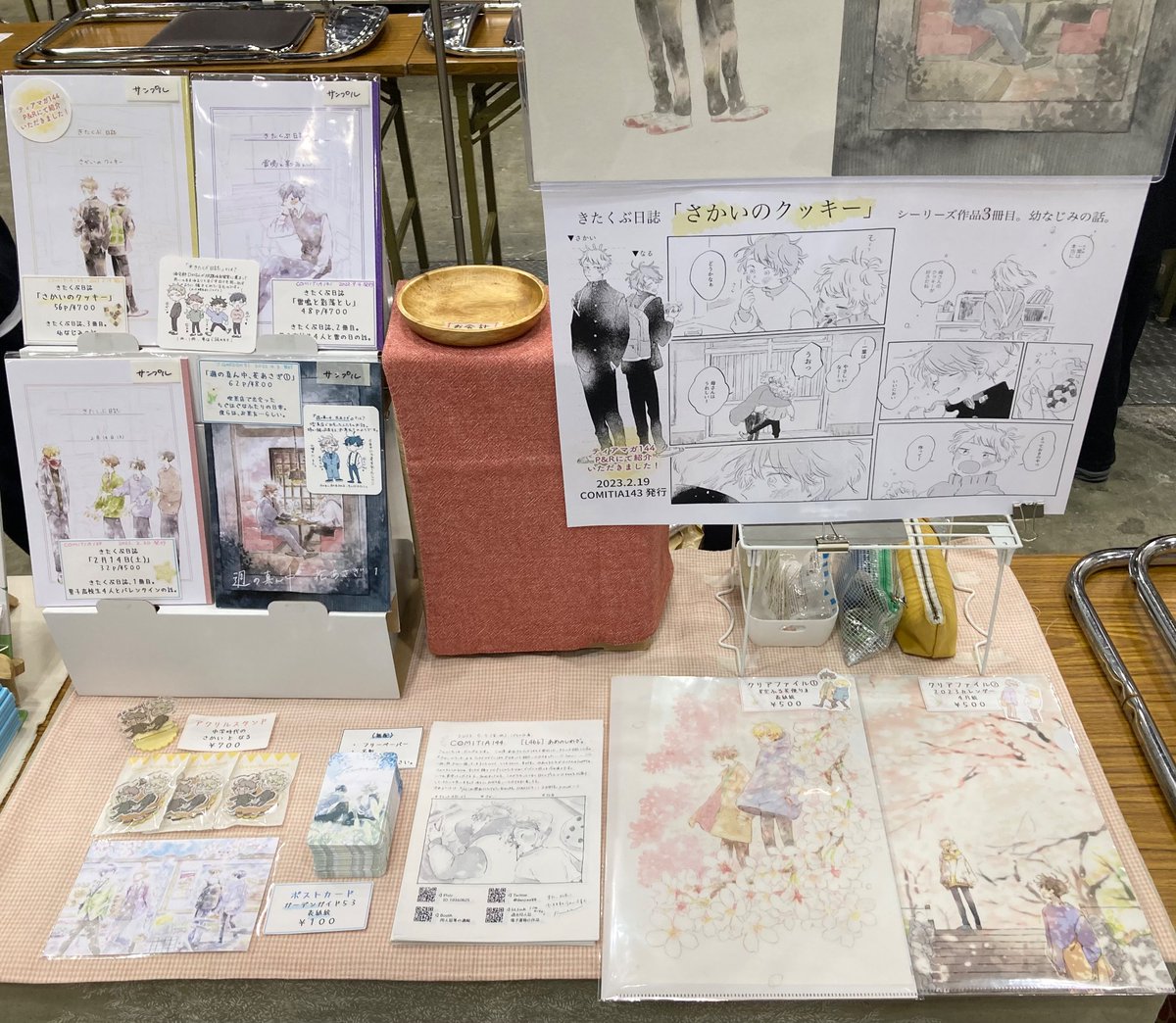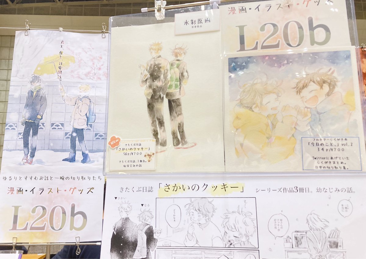 設営完了しました🎏 名札下げているのは売り子さんです🙌原画も飾ってます!ゆるりと遊びに来てください〜!よろしくお願いしますー! #コミティア144 #COMITIA144 twitter.com/danpee88/statu…