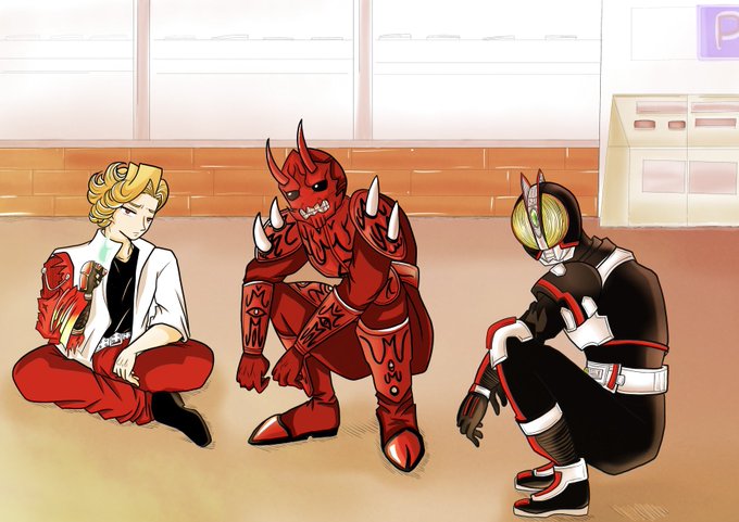 何見てんだよ。 #仮面ライダー #モモタロス #アンク #たっくん #イラスト