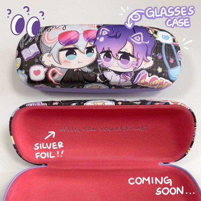 [RT💙] Y’all I’m so excited to show you guys these cases at AIOC 🥹 I’ve always wanted to make glasses cases but never had the guts to try until now. Im quite proud of them so I really hope you guys like them too!😭💜 #Palouette #DrawKyo #Artchivist #VioletAtelier #PsyBorg