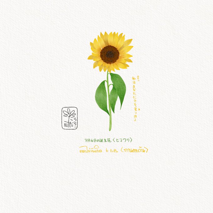 1222 1566 ดอกไม้วันเกิดประจำวันที่ 6 กรกฎาคม “ดอกทานตะวัน Sunflower” ภาษาญี่ปุ่นเรียกว่า ฮิมะวะริ ภาษาดอกไม้คือ ฉันจะมองแค่คุณ 23/07/06 12:14