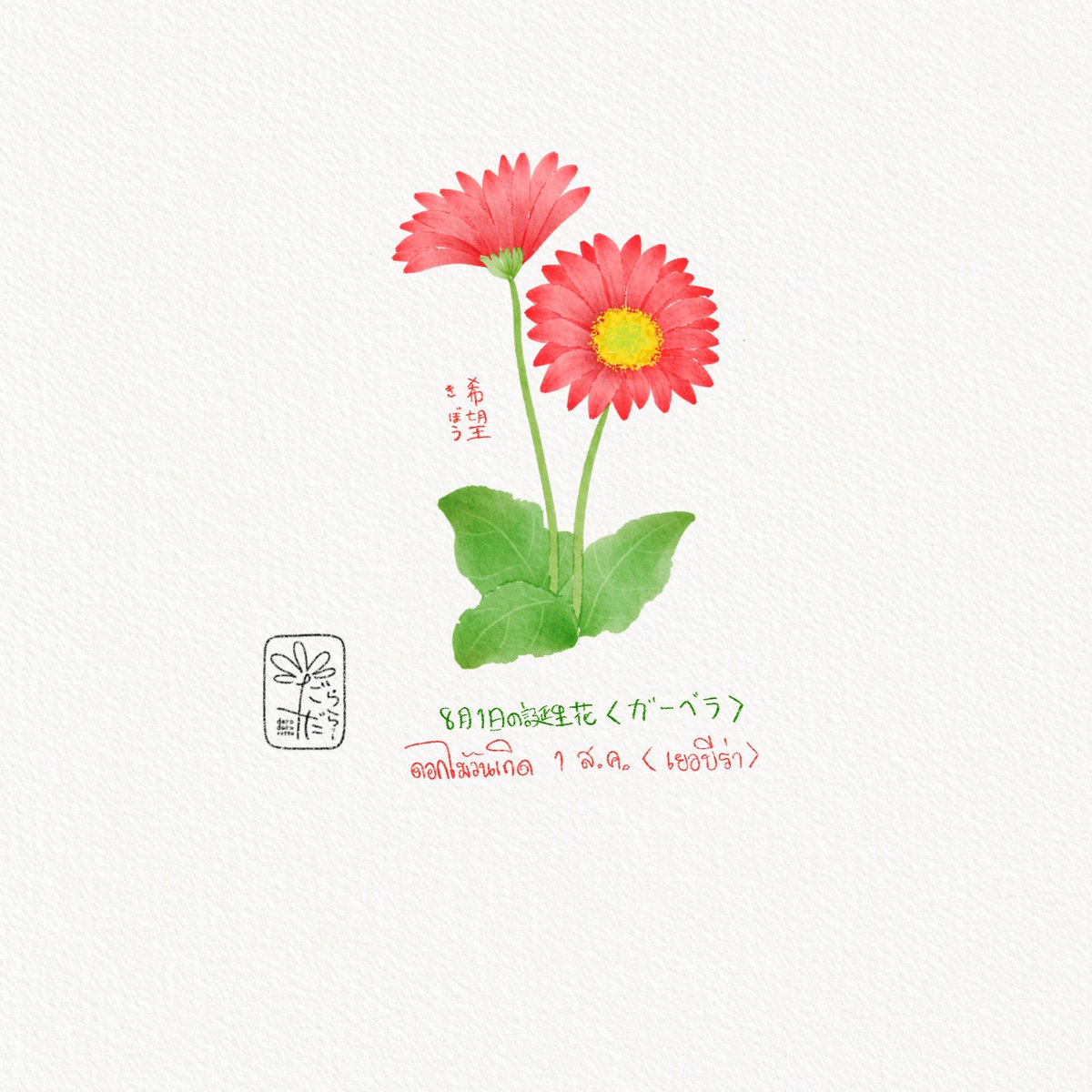 ดอกไม้วันเกิดประจำวันที่ 1 สิงหาคม "ดอกเยอบีร่า Gerbera" ภาษาญี่ปุ่นทับศัพท์ว่า ガーベラ(กาเบะระ) ภาษาดอกไม้คือ การคาดหวัง