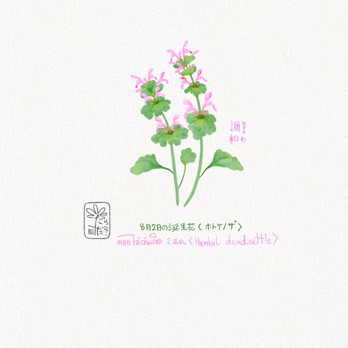 ดอกไม้วันเกิดประจำวันที่ 2 สิงหาคม “ดอกHenbit deadnettle” ภาษาญี่ปุ่นเรียกว่า ホトケノザ(โฮะโตะเคะโนะซะ) ภาษาดอกไม้คือ ความกลมกลืน ด้วยใบของดอกไม้นี้มีลักษณะคล้ายกับฐานดอกบัวของพระพุทธรูปเลยเป็นที่มาของชื่อ仏の座(ホトケノザ)ซึ่งแปลว่า ฐานพระพุทธรูปนั่นเอง