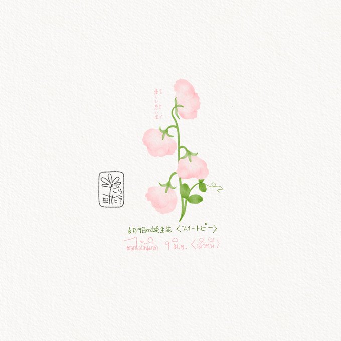 ดอกไม้วันเกิดประจำวันที่ 9 มิถุนายน “ดอกสวีทพี Sweet pea” ภาษาญี่ปุ่นทับศัพท์ว่า สึวีโตะพี ภาษาดอกไม้คือ ความทรงจำที่แสนอ่อนโยน