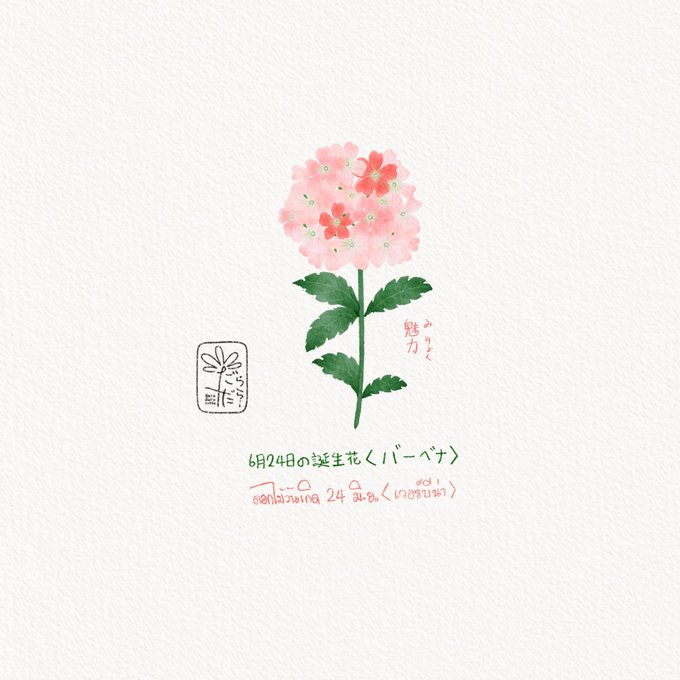 ดอกไม้วันเกิดประจำวันที่ 24 มิถุนายน “ดอกเวอร์บีน่า Verbena” ภาษาญี่ปุ่นทับศัพท์ว่า บาเบะนะ ภาษาดอกไม้คือ ความมีเสน่ห์