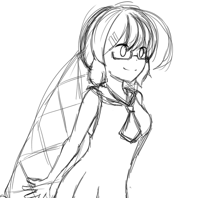 #このタグを見た人はラフ画とその完成絵を見せる ツインテールがなんか変だなと思ってペンを入れる段階で修正しといたのは正解だった😌