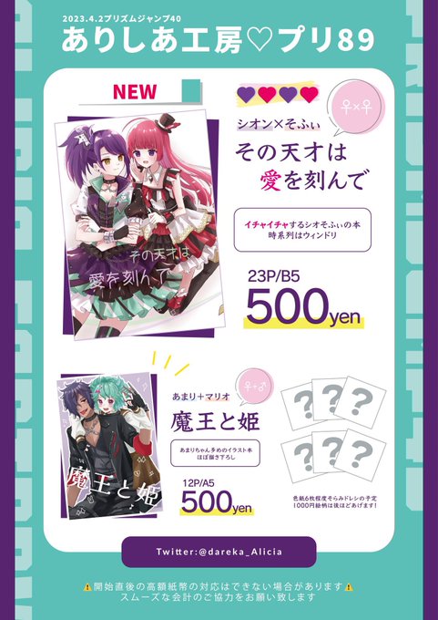 4月2日のプリジャンのお品書きです~!!プリ89で、超絶プリティ売り子ちゃん(@Kotono__cos )と一緒に待ってます🫶🫶💘💘