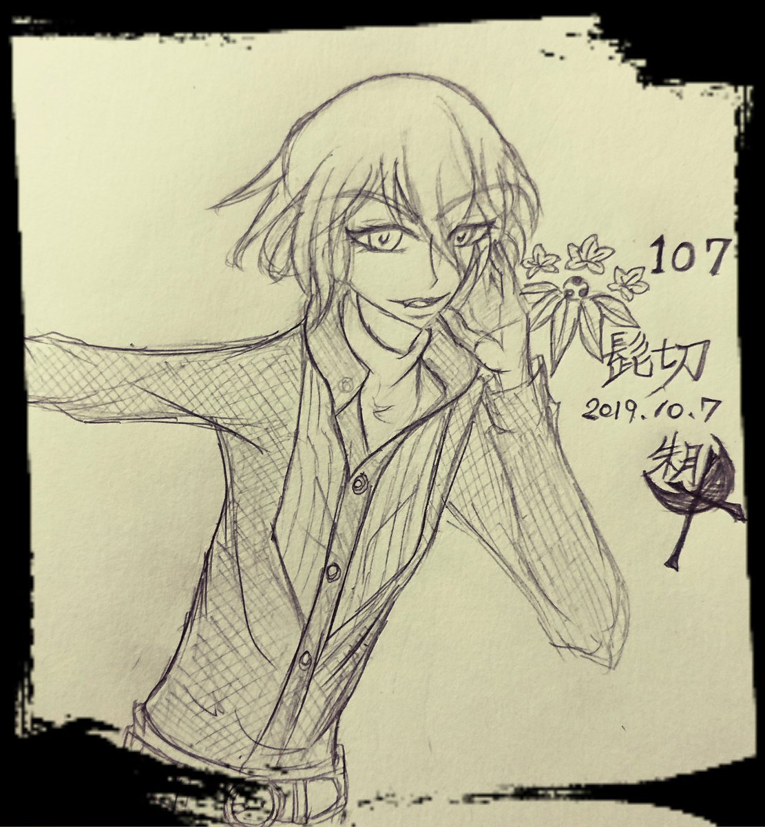1 1 #10月7日は刀帳番号107番髭切の日 という訳で、髭切さん落書き。難しい……加工で誤魔化そうとしたけど……うん。……無理だ(笑) でも楽しかった( ̄ー ̄) 19/10/07 21:53