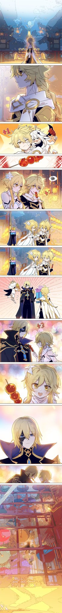 After watching the festival anima, this scene came to me 4人贴贴 #GenshinImpact #genshinimpactfanart #Aether #空 #萤 #lumine #dainsleif #戴因斯雷布