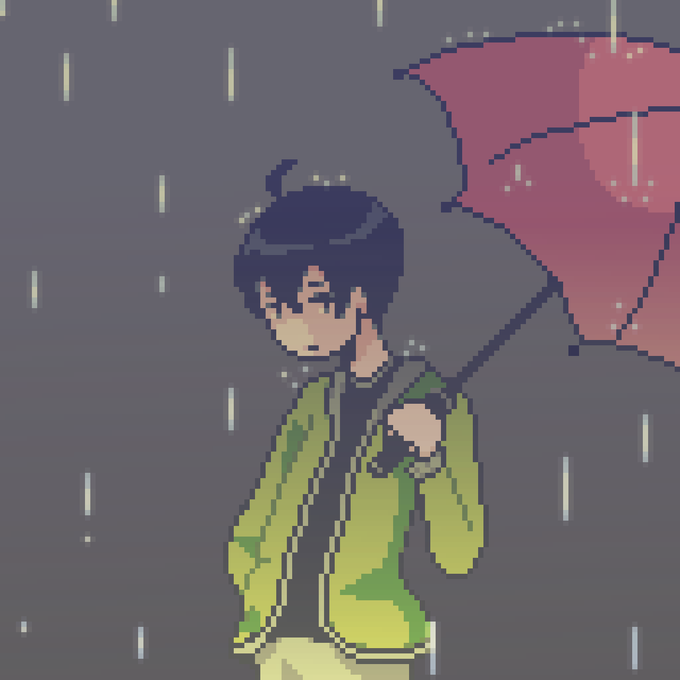 6 22 Darkizu in the rain. #pixelart - #digitalart - #ドット絵 23/05/27 22:01