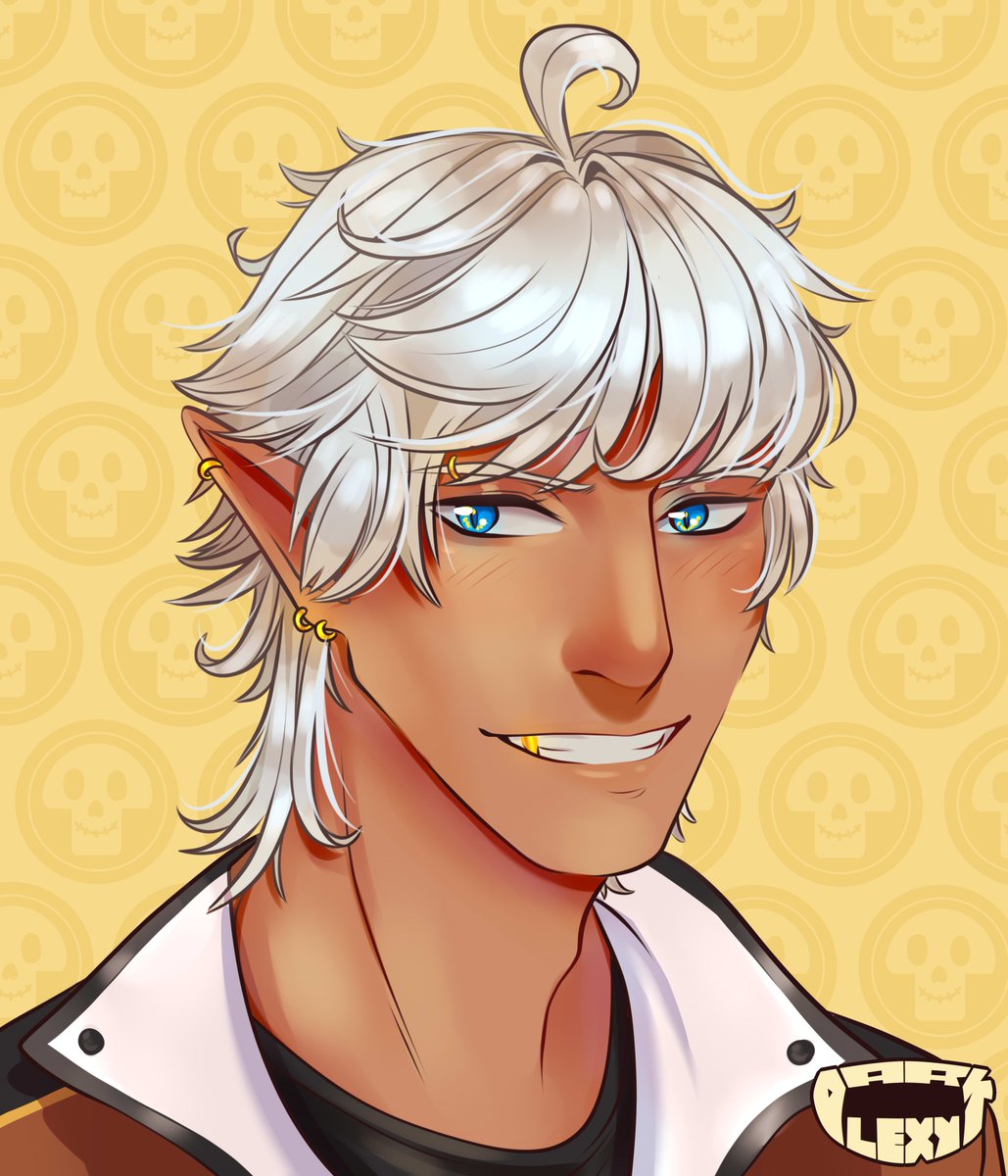 I hc the bros to be edgier than in-game. I figure Mams has the most mods of the lot, with an eyebrow piercing, several ear, probs a tongue + other mods Also...mullet and gold tooth uwu #ObeyMe #ObeyMeMammon #ObeyMeFanart #Fanart