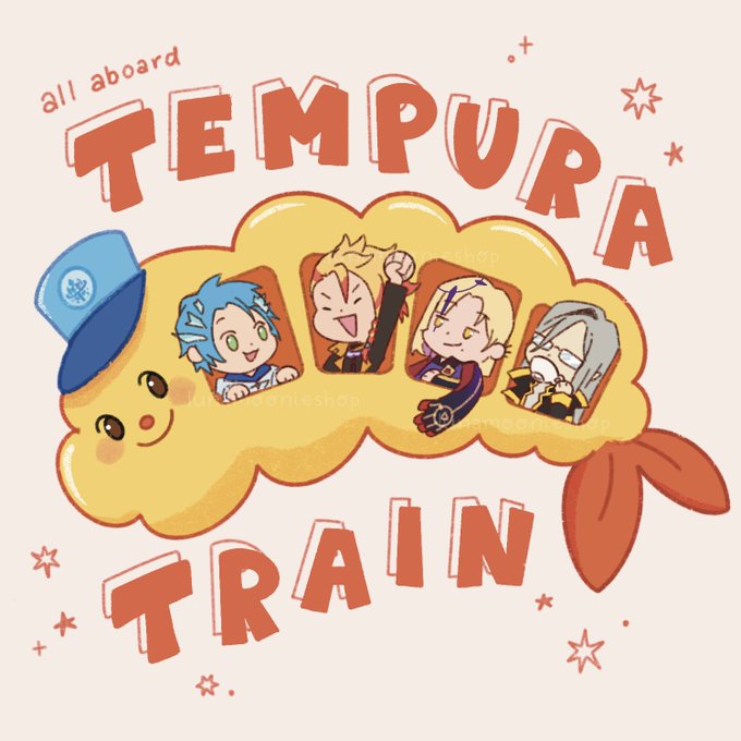 made another version of the previous tempura train for the new boys, welcome to the fam u guys are all doing great!!🍤 #Bettelful #FlayonsCrayons #PIHAKKASO #JosuijiArt #holoTEMPUS