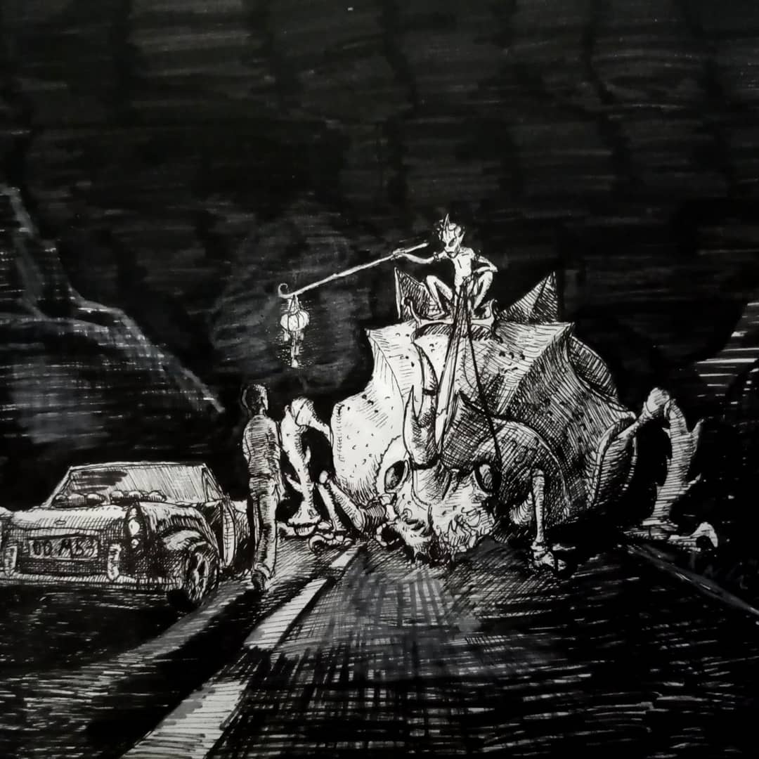 Illustration inspired by Ray Bradbury's "The Martian Chronicles" #ink #inktober #illustration #alien #sketchbook #scify #fantasy #art #beetle #encounter #ufo #drawing #magic