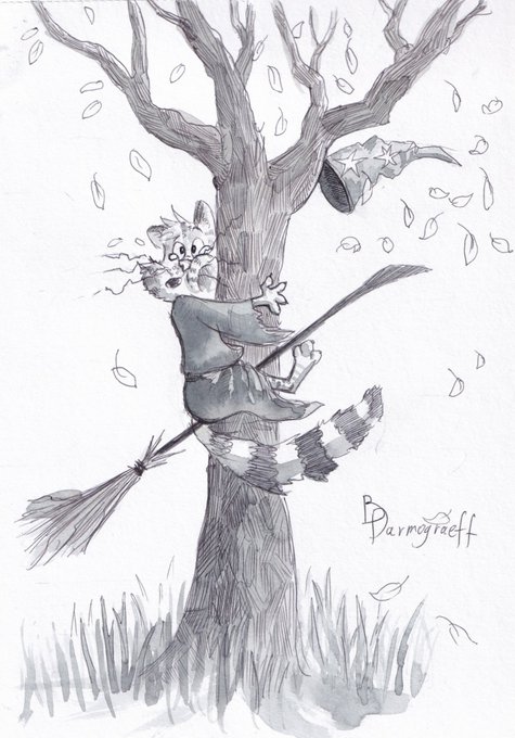 Inktober, day 17. "Collide" #inktober #inktober2021 #inktober2021collide #illustration #fantasy #traditionalart #wizard #cat #artistontwittter #furry #anthro #furryart #collide