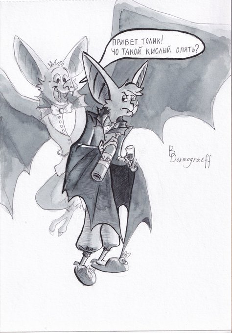 Inktober, day 11. "SOUR" "Hi Larry! Why you've got such a sour face again?" #inktober #inktober2021 #inktober2021sour #bat #vampire #furry #furryart #art #artistontwittter #monday