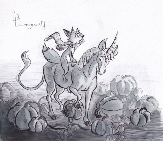 Inktober, day 12. "STUCK" #inktober #inktober2021 #inktober2021stuck #illustration #fantasy #traditionalart #unicorn #fox #pumpkin #ink #art #люблюрисовать #инктобер #furry #anthro #furryart