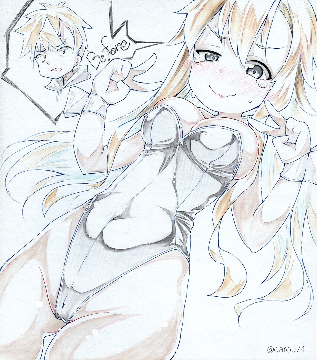 90 403 シャドウバンで自粛していたのですが、 そろそろイラストあげてみます。 TSっ娘ビホーアフター色紙です。 何というか、男の名残のあるボサ気味の髪型のTSっ娘、いいですよね! #TS #TSF 22/09/28 21:18