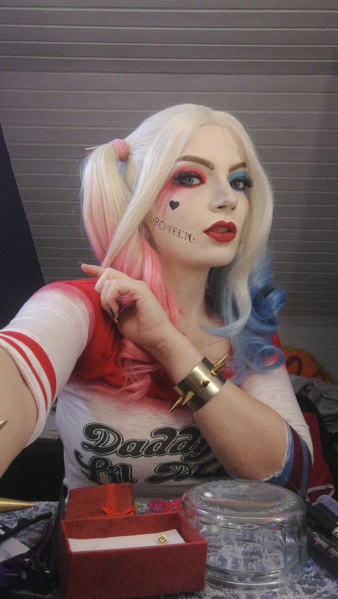 Can I have a cosplay sugar person plz that buys me the whole suicide squad Harley Quinn cosplay? My gf wrote Rotten on my face. It's not a temporary Tattoo 😂 #HarleyQuinn #SuicideSquad #cosplay