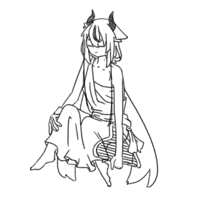 #鳴花ヒメ・ミコト版ワンドロワンライ 初めてペンで描いた〜 下書き消した時の皺は御愛嬌