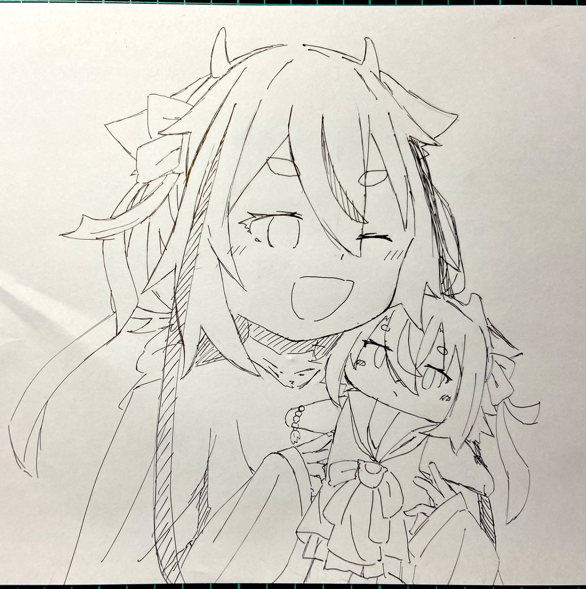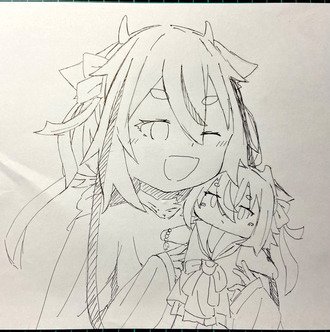 #鳴花ヒメ・ミコト版ワンドロワンライ 描き始め遅刻&遅い筆のせいで+18分です 色付けてないけどかわいいからよし!