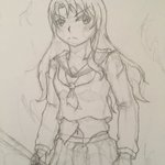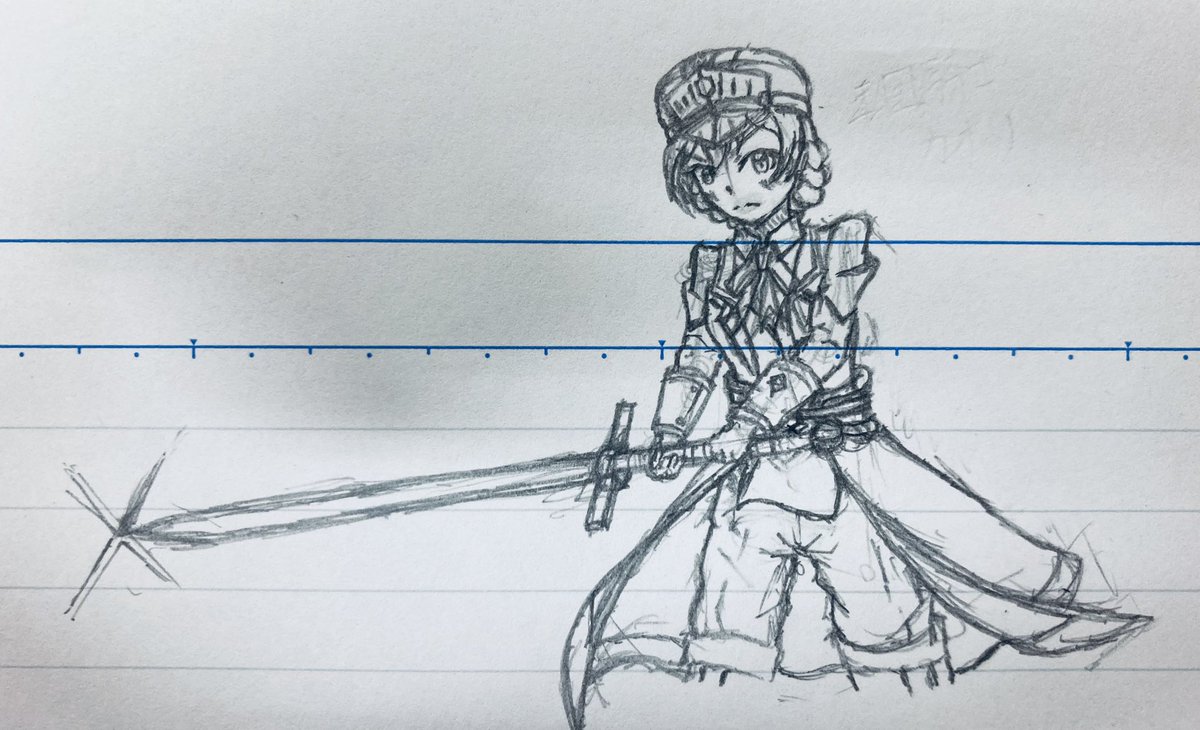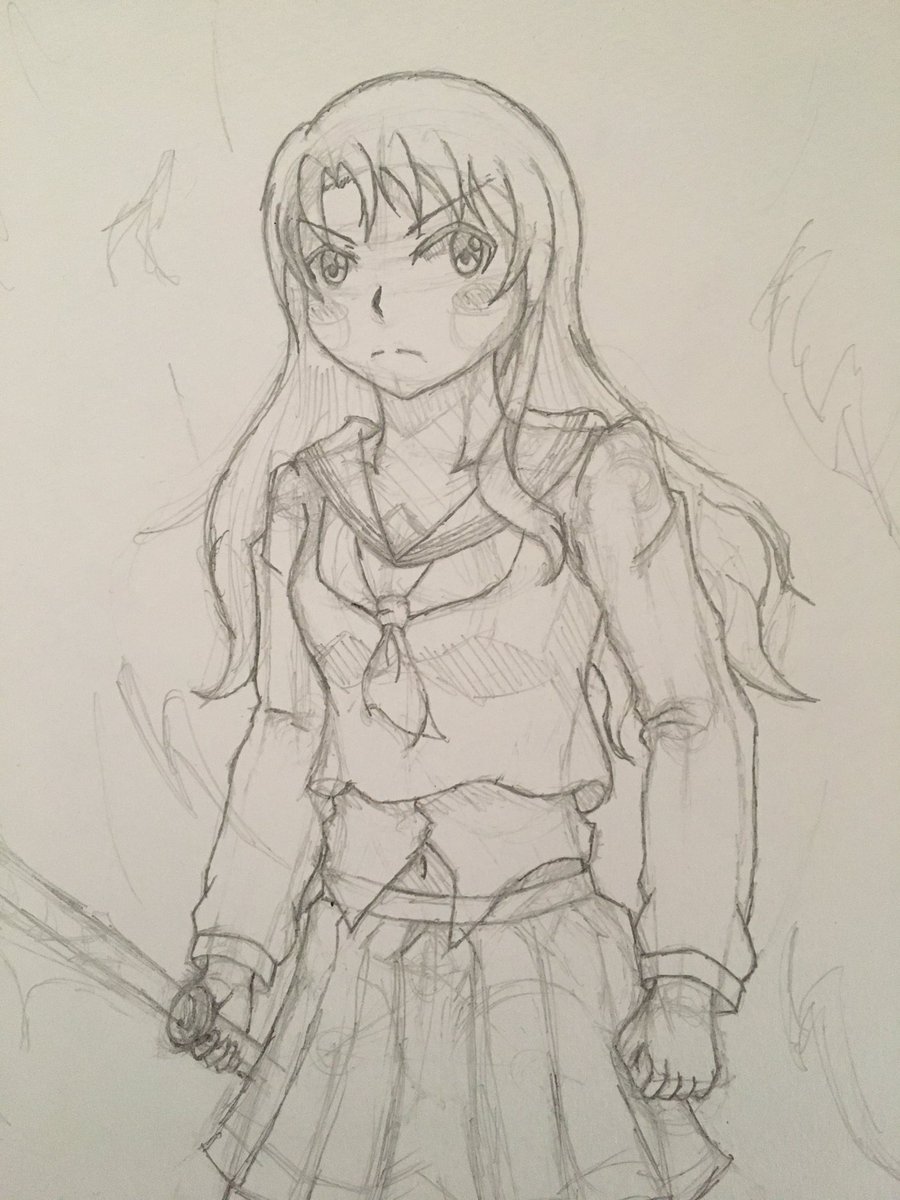 髪を下ろしたダークセーラー紗代子の落書き 刀の持ち手やら向きやらが全然分からないのだ