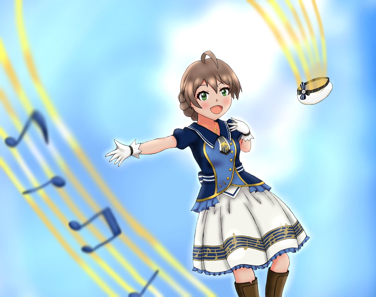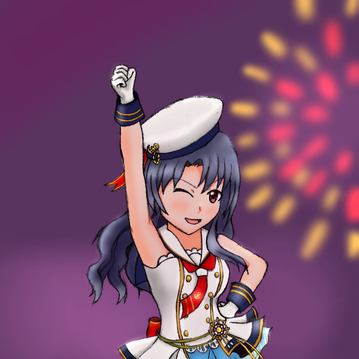 #フォロワーさんからリプで送られてきたミリシタのスクショを自分の絵柄で描く HANABI団紗代子!!背景上手く描けなくてすみません… twitter.com/takashi_ssss/s…