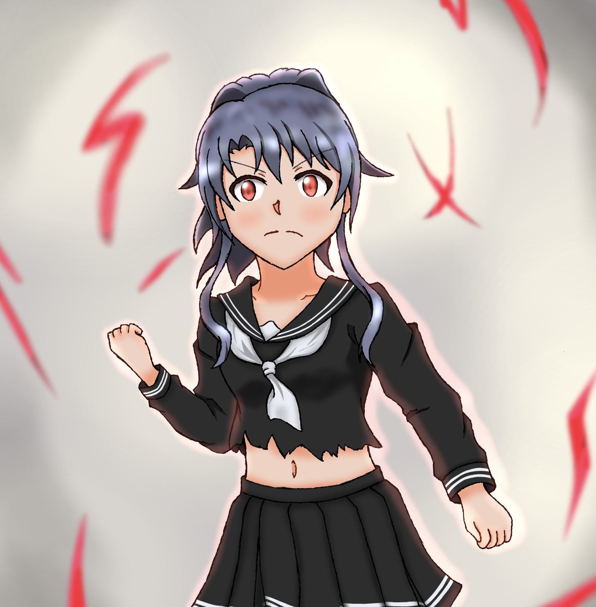 2 5 髪を下ろしたダークセーラー紗代子の落書き 刀の持ち手やら向きやらが全然分からないのだ 21/07/17 15:05